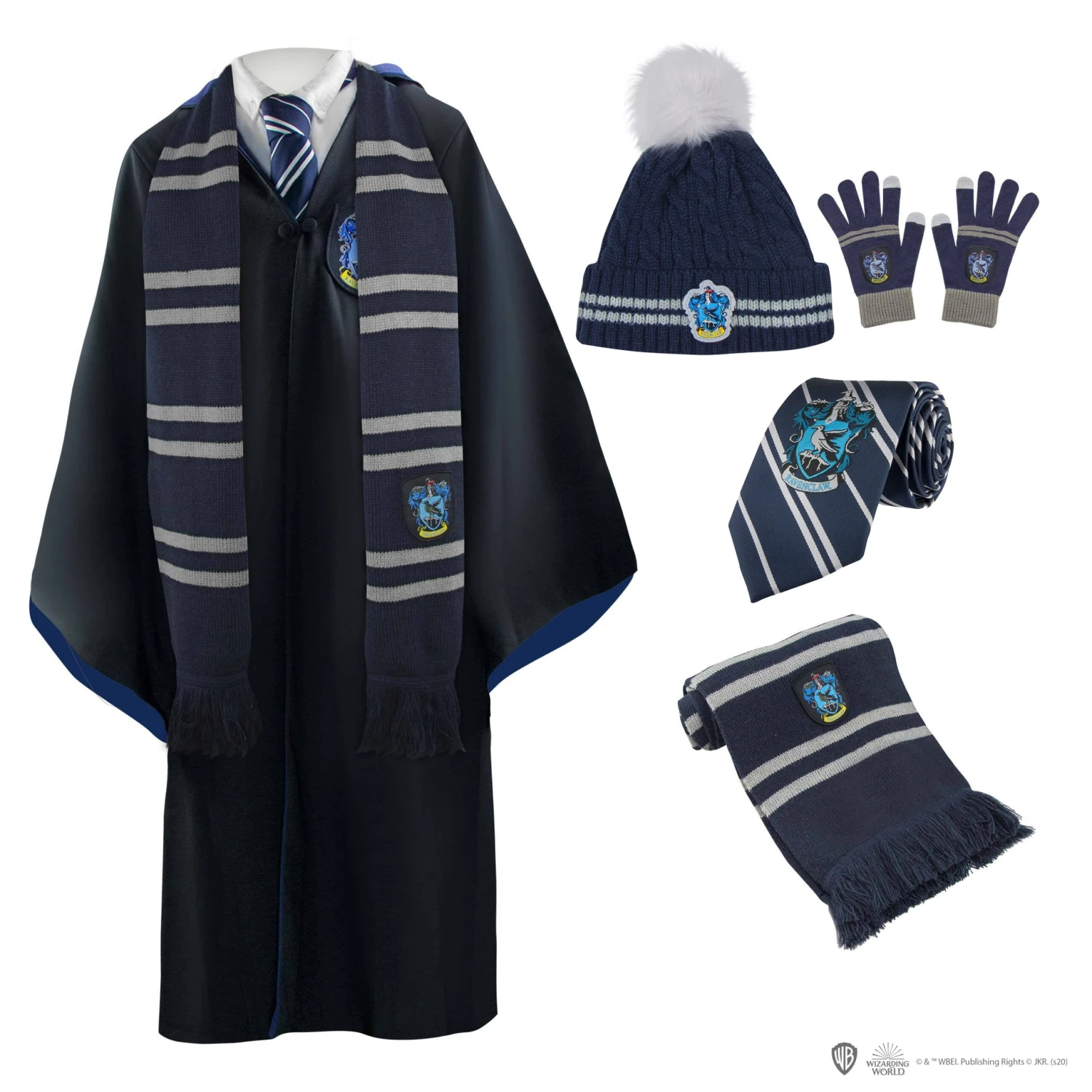 Including a robe, tie, beanie, gloves, and scarf that highlights the colors of the House Ravenclaw. You can effortlessly show your pride from head – to – toe!