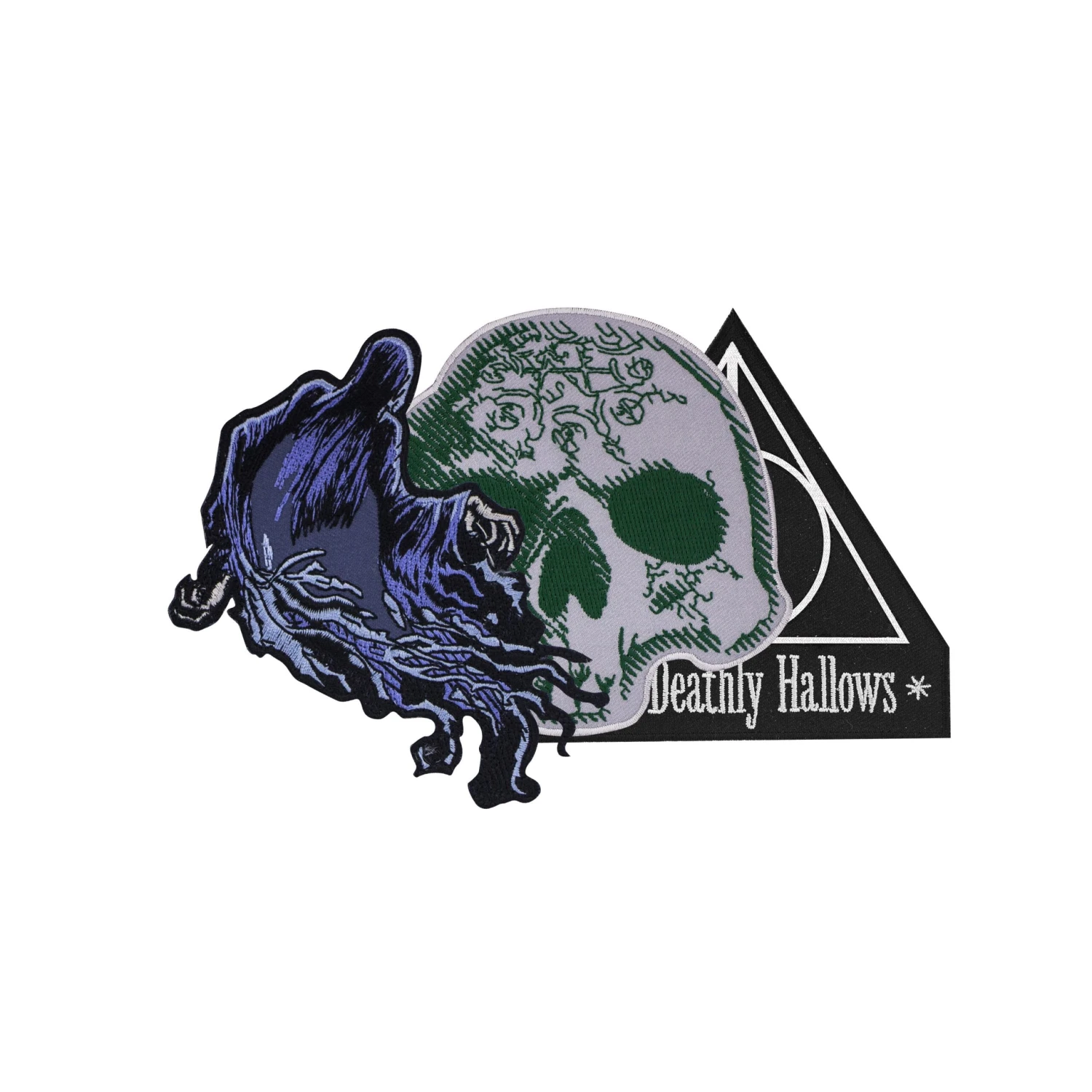 This pack of Deathly Hallows patches includes embroidered logos of the Deathly Hallows, a Dementor and Dark Mark skull.