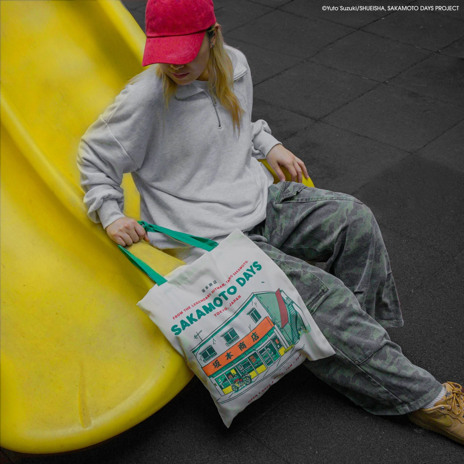 This From the Legendary Hitman Tote Bag is a vibrant tribute to Sakamoto’s iconic store. The centerpiece is a dynamic illustration of the shop with energetic pops of color that highlight every detail. This design reflects Sakamoto’s evolution from a hitman to a more colorful present, inviting you to carry a piece of that transformation wherever you go.