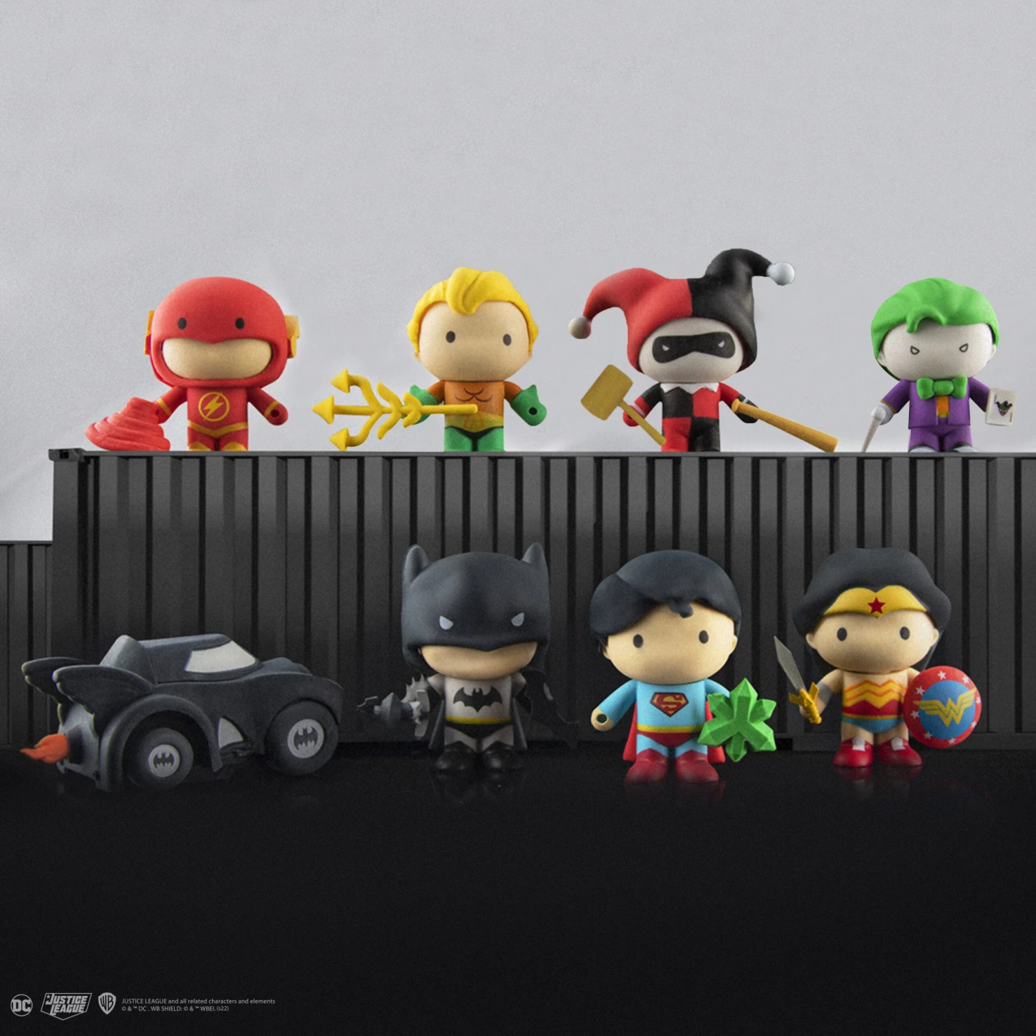 It’s a mystery choice! Open the box and find out which DC Comics character is inside: Superman, Wonder WomanAquaman, Batman, the Batmobile, Flash, Aquaman, the Joker or Harley Quinn.