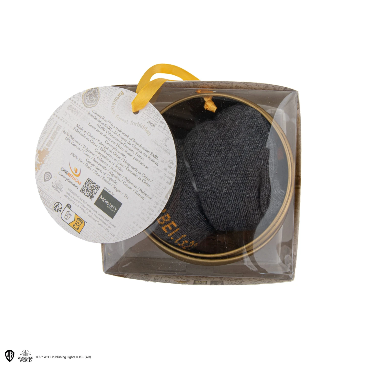 Enjoy a Christmas bauble that will look perfect hanging on your tree, or gift this ornament to your loved ones for them to discover a surprise gift on the inside: a one-size Hufflepuff-inspired pair of socks.