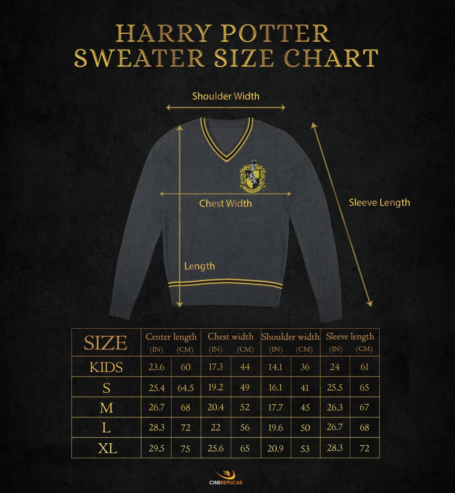 Hufflepuff sweater as seen in the Harry Potter film series. Display your House pride with this V-neck sweater and its quality embroidered Hufflepuff House crest. Made of soft-touch knit, it’s easy to match your day-to-day clothes or to wear with your full Hufflepuff uniform.