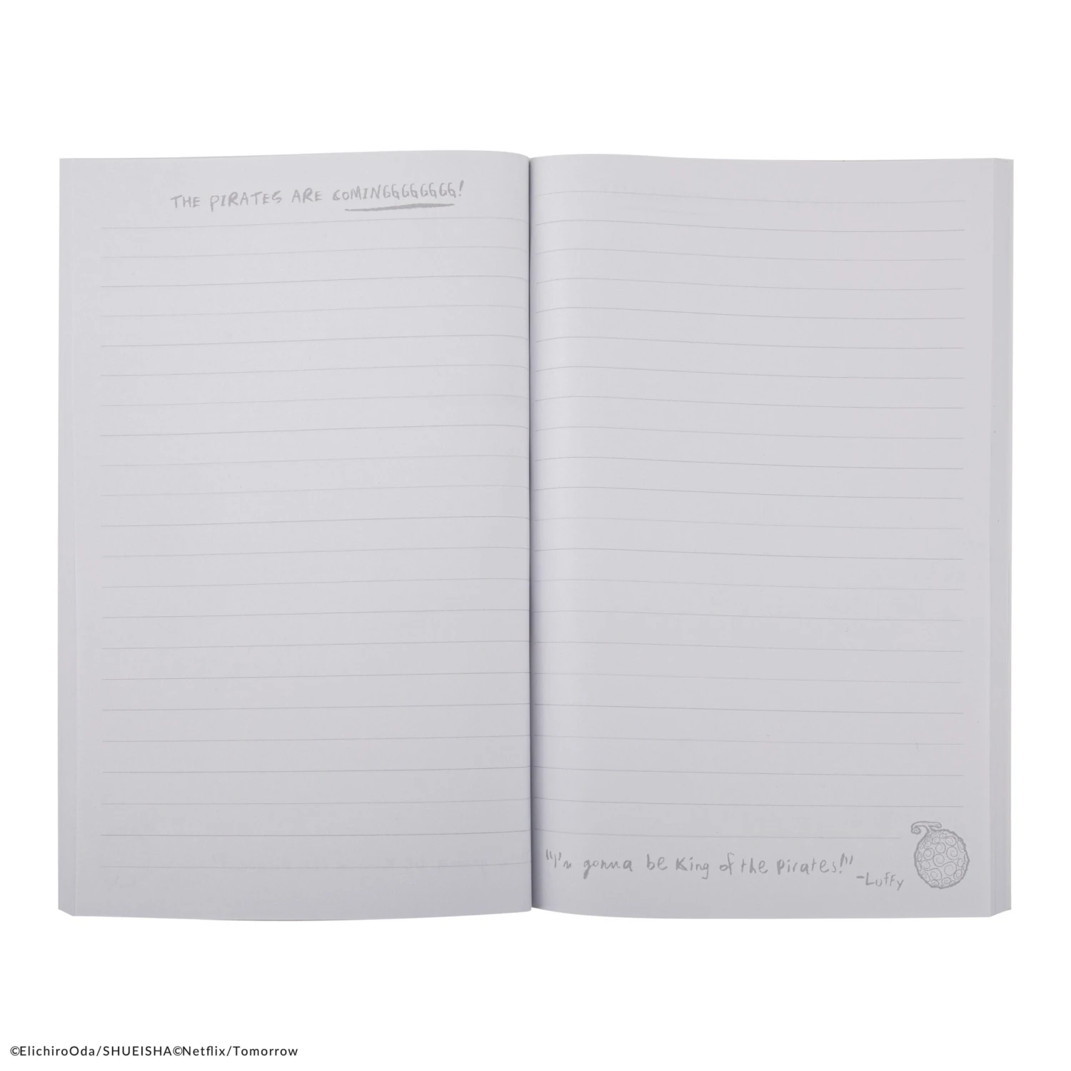 The calm elegance of the of the background colour is contrasting the red vest of Luffy and his name written on a golden coating. Whether you’re sketching your own Devil Fruit powers or writing down epic quotations from Monkey D. Luffy, this notebook is ideal because it’s lightweight and portable.
