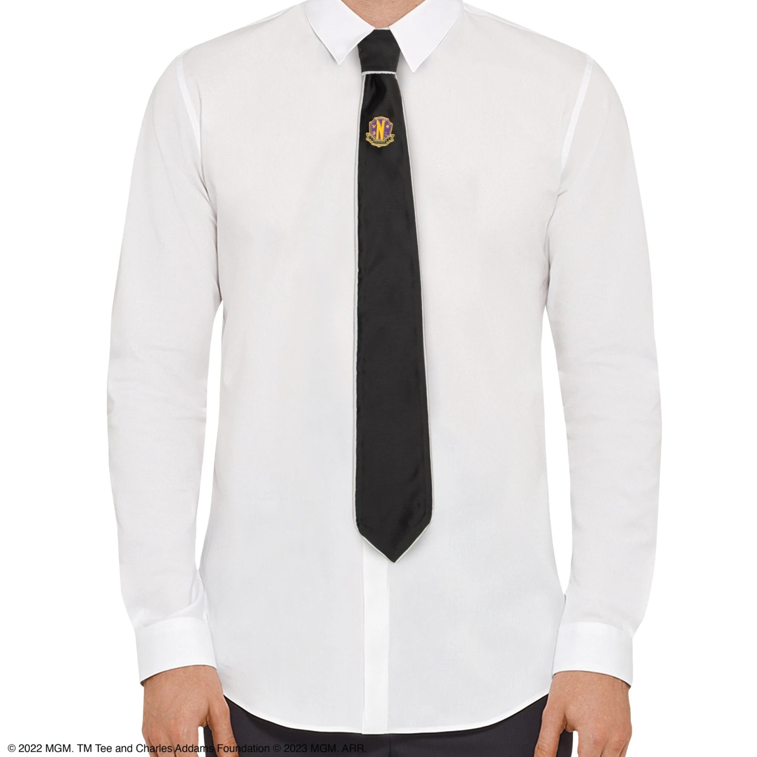 This Nevermore Academy Necktie and pin is a must-have for any fan of the macabre while adding a touch of dark elegance to your outfit.