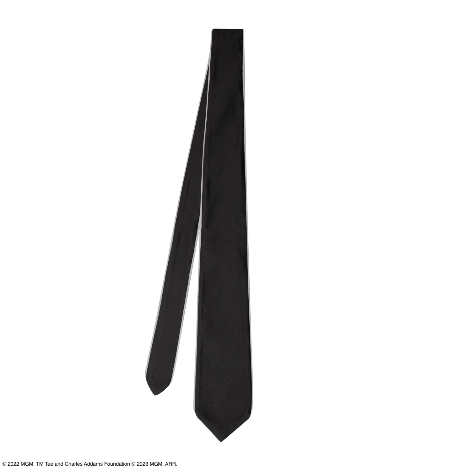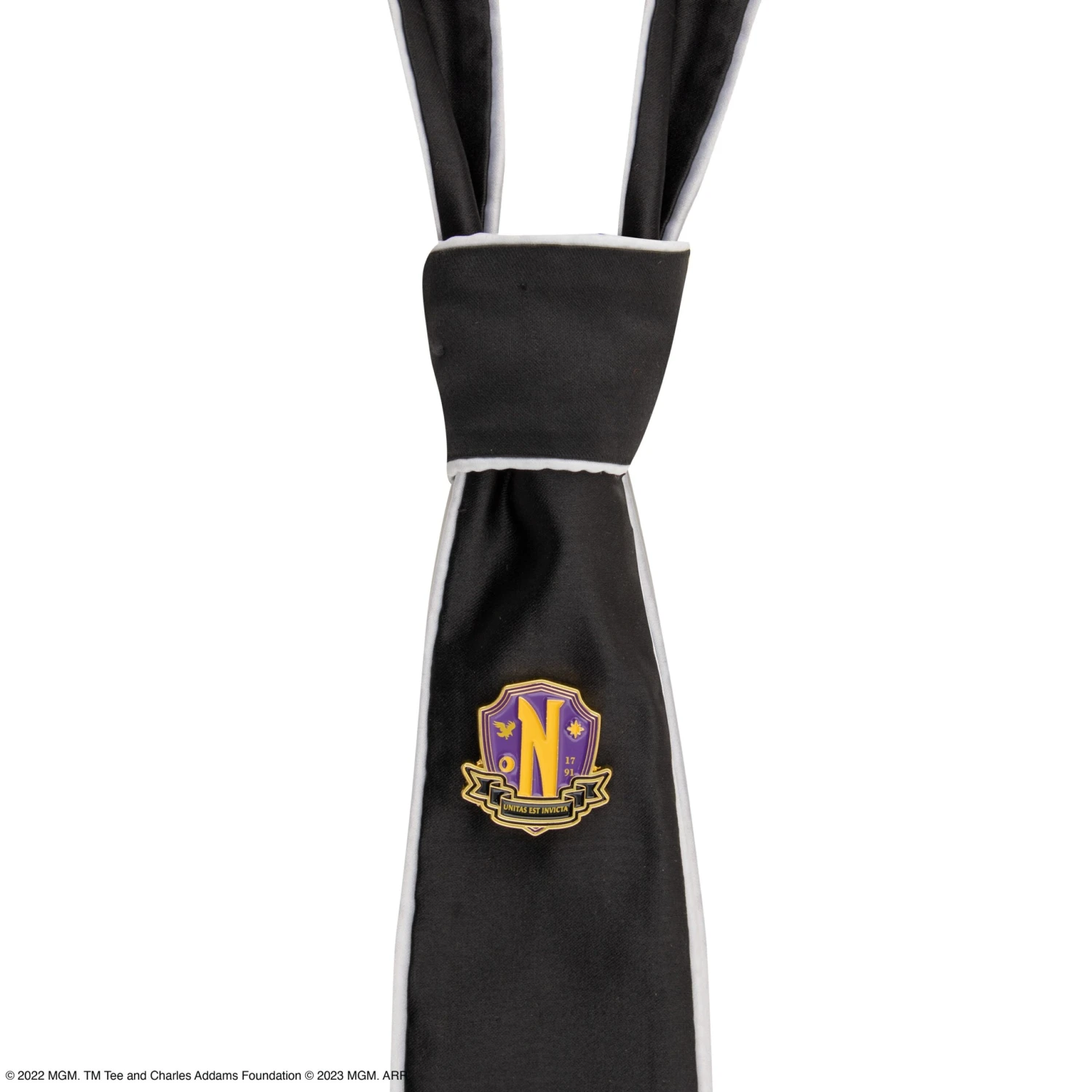 This tie and pin set is suitable for both costume and day-to-day use such as work. It features the exact same necktie from the Nevermore Academy uniform and exudes a sense of dark sophistication that will captivate any Addams Family enthusiast.