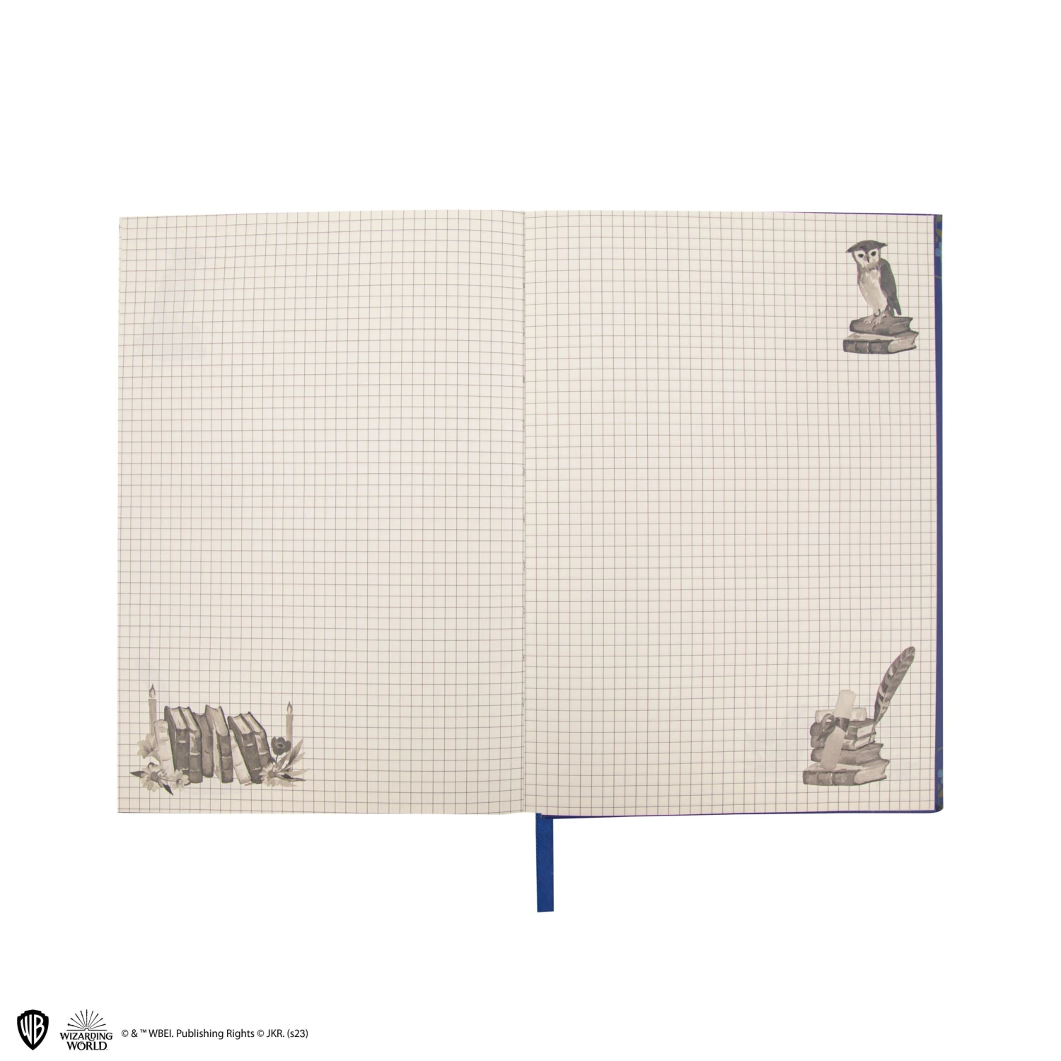 - Grid pages decorated with books and lined pages with more books, an owl and Luna’s Spectrespecs