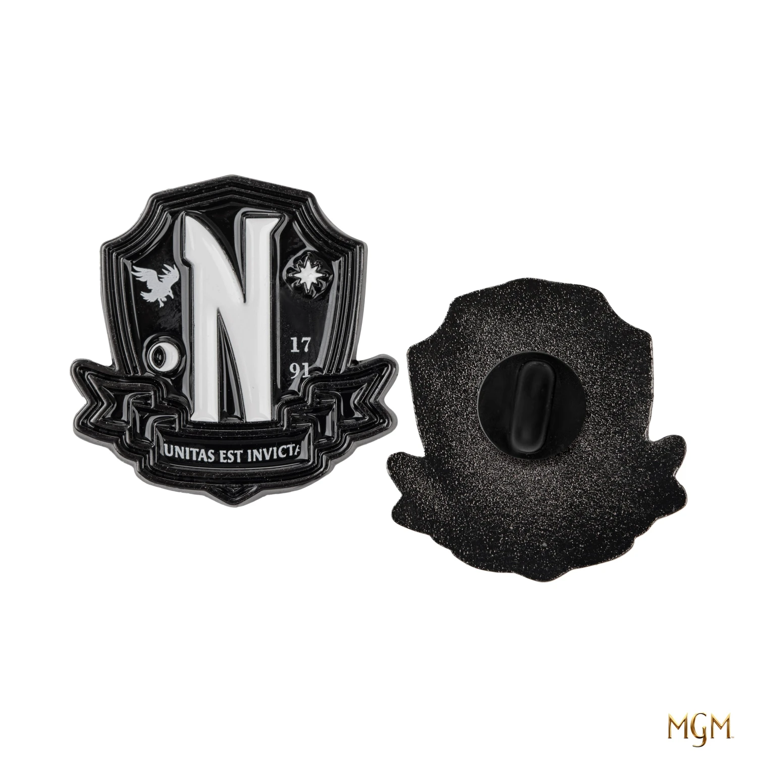 Customise your jackets, your bags and your jumpers with these Nevermore Academy pins. One comes in the official colors of the school while the other is Wednesday’s interpretation of the logo. A must-have for any fan of the macabre!