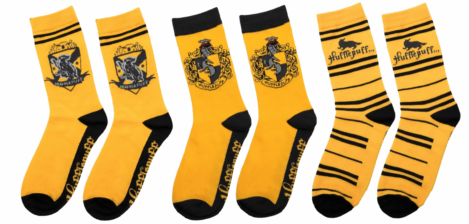 Show your Hufflepuff pride from head to toe with these 3 pairs of socks featuring Hufflepuff emblems and the recognisable yellow and black colors.