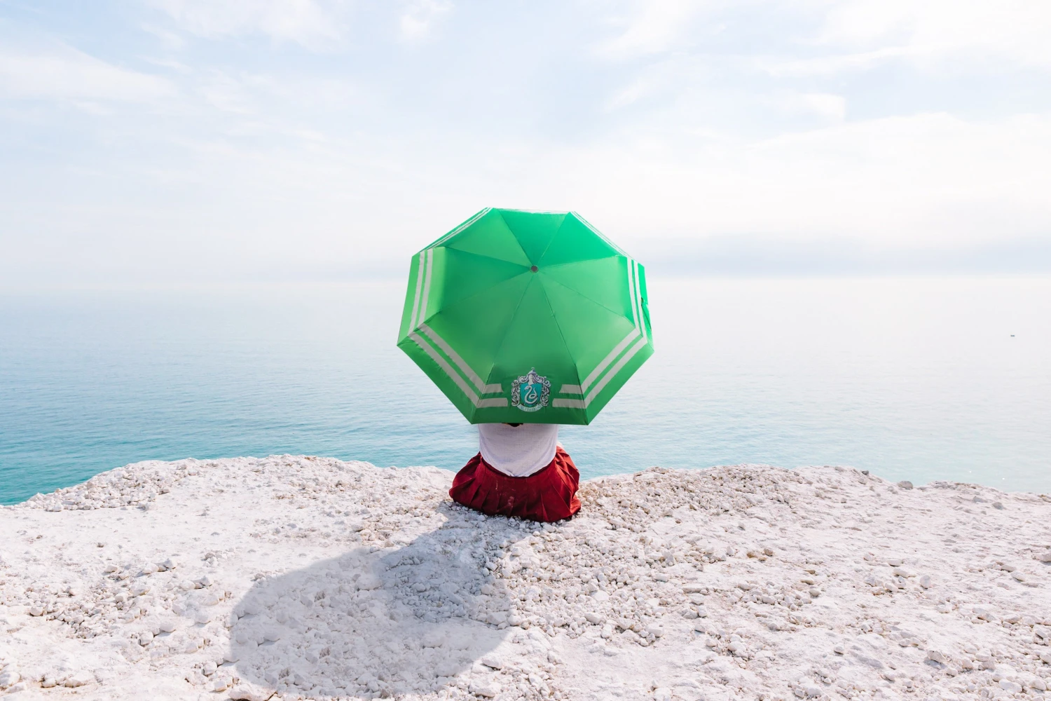 This umbrella opens with an automatic button and can be put away in its waterproof protective pouch. Showcase your House pride with this Slytherin umbrella!