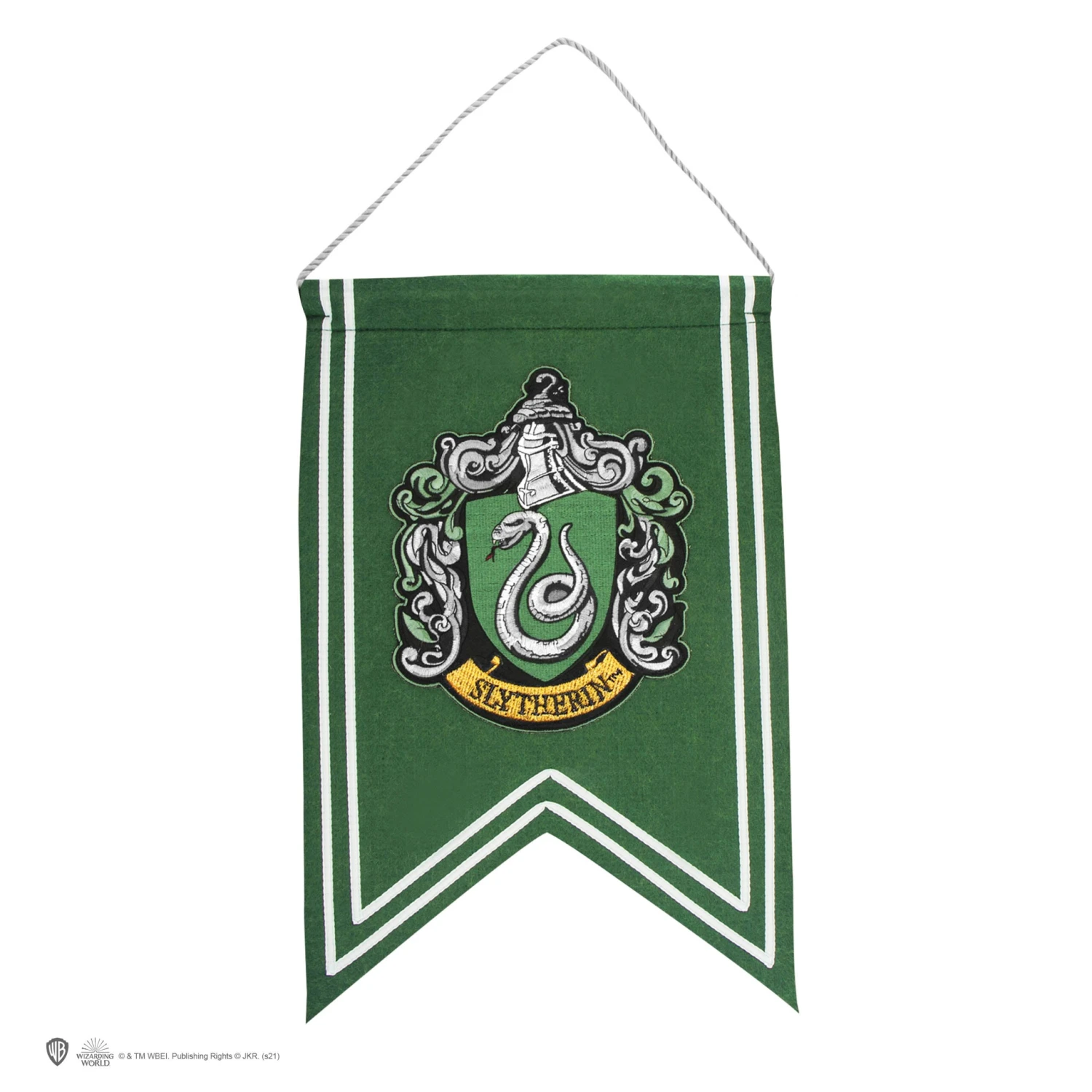 Wall banner to showcase your House pride and decorate your room in Slytherin colours. Detailed embroidered Slytherin crest and high quality fabrics makes this banner so special.