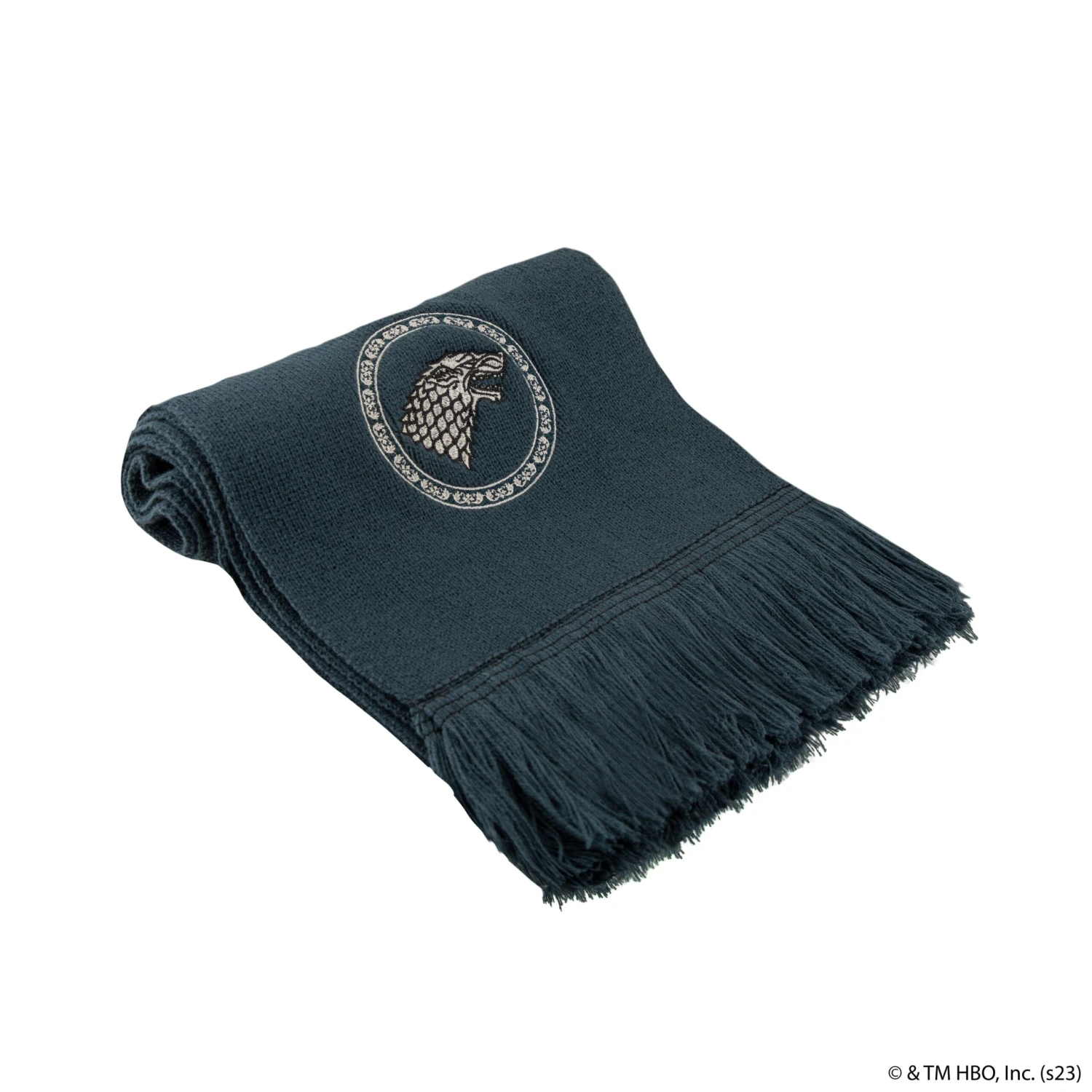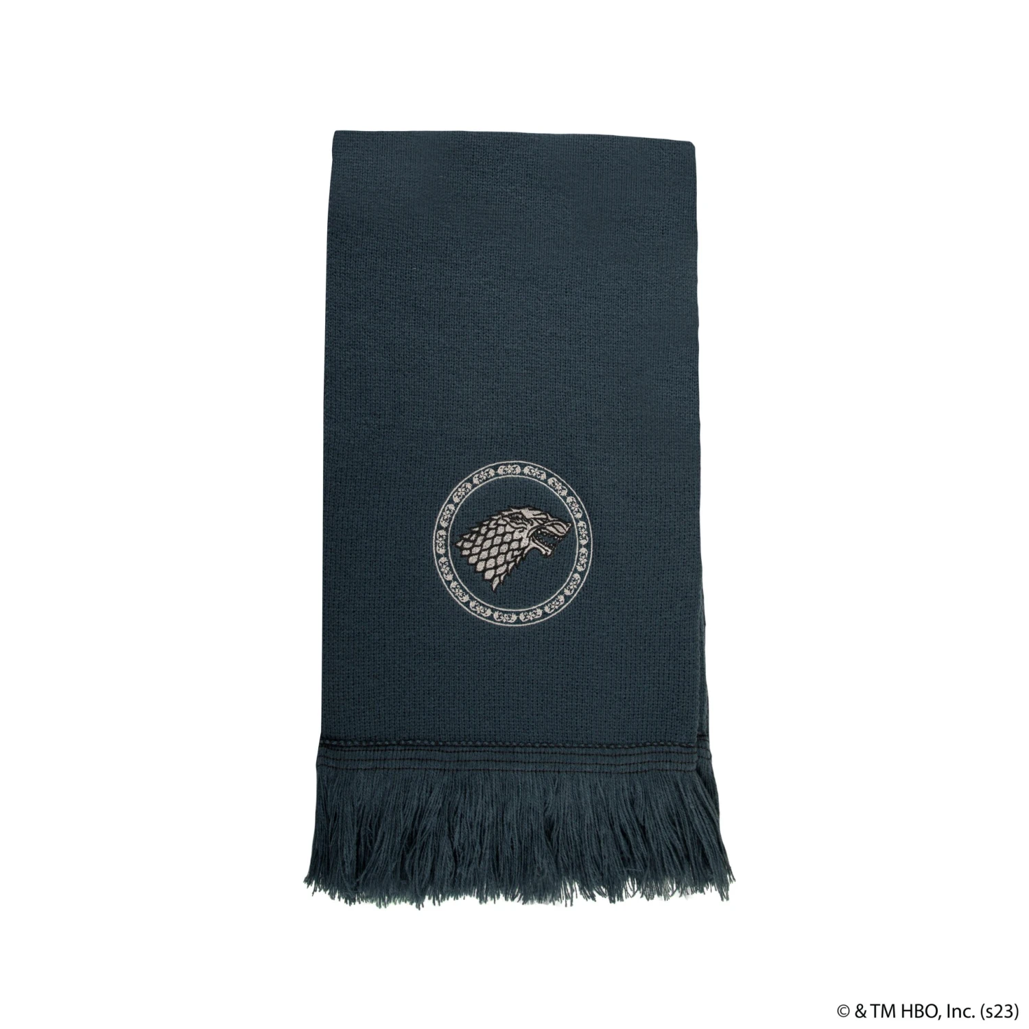 The blue/grey scarf features the iconic Stark sigil of a grey dire wolf skilfully embroidered on one end, while the other end proudly displays the famous House motto, “Winter is Coming”.