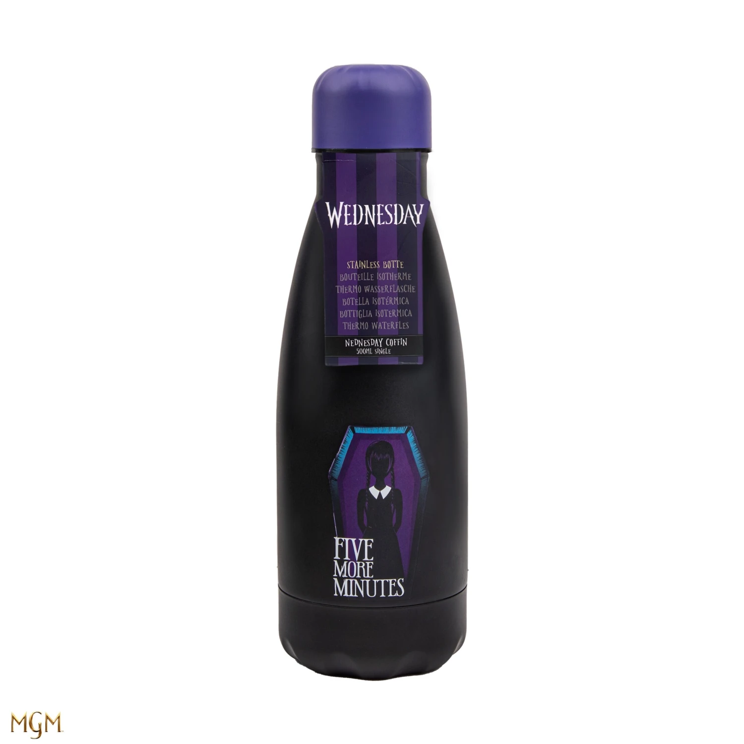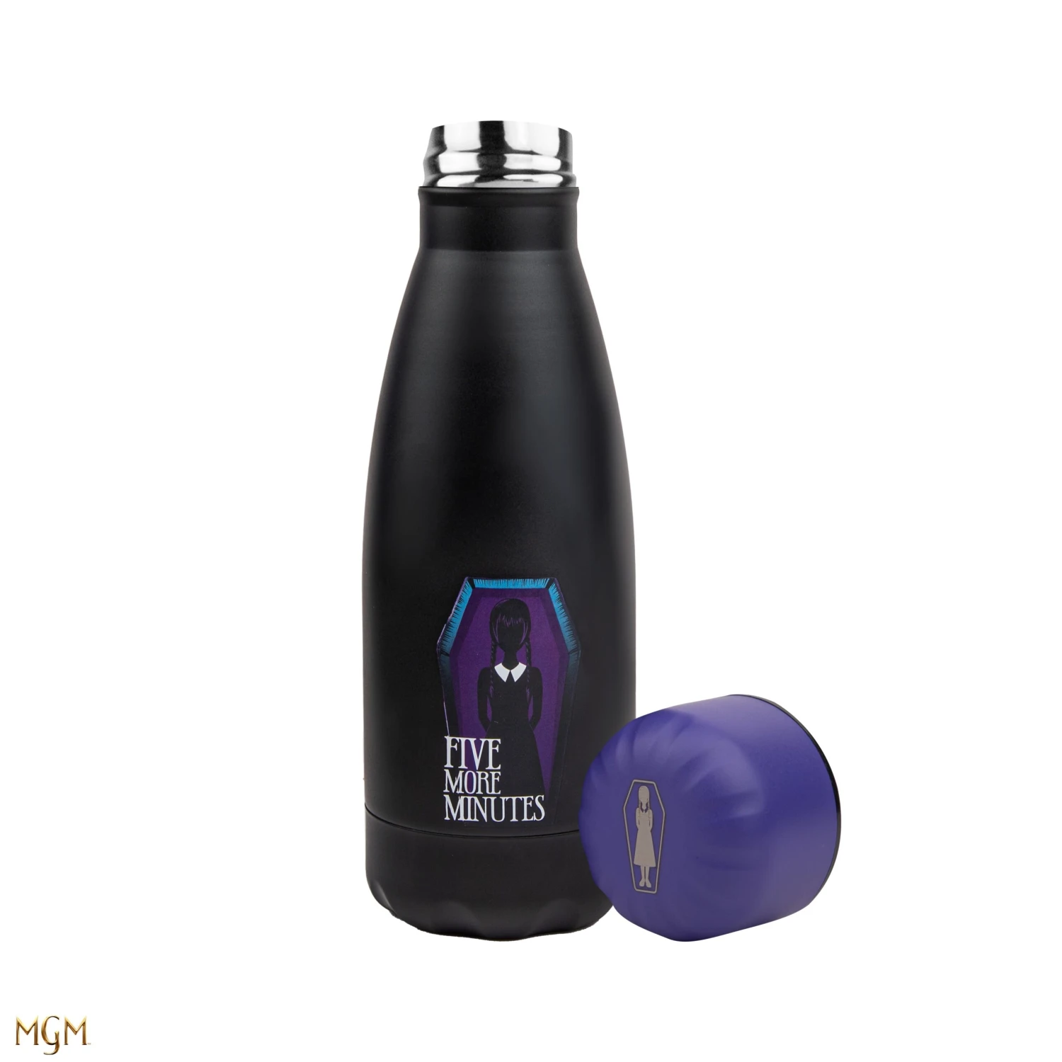 Drawing inspiration from the mysterious and thrilling adventures of Wednesday Addams in the Netflix-hit show, Wednesday. This water bottle is designed with an illustration of Wednesday inside a coffin and her iconic line “Five more minutes, I was just getting comfortable”. Keep yourself well-hydrated and add a touch of Wednesday mystery to your day.