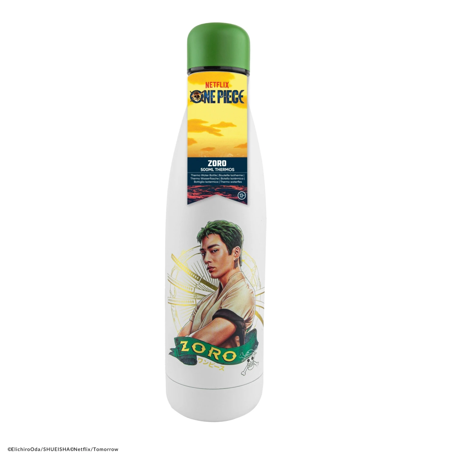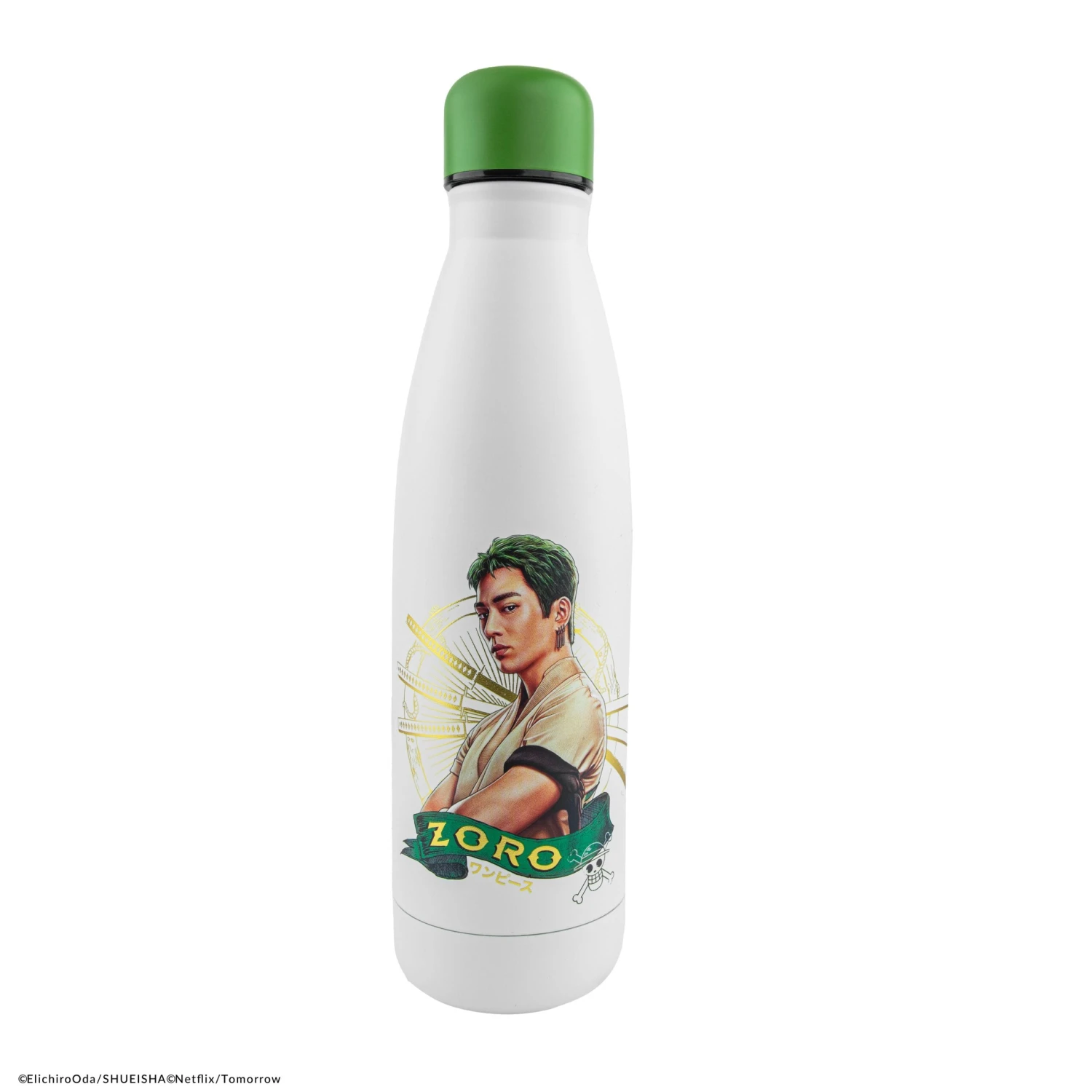 The Zoro water bottle is crafted from durable yet nimble stainless steel, reflecting Zoro’s determined nature. The Jolly Roger-printed green cap serves to accentuate his iconic green hair throughout the series.